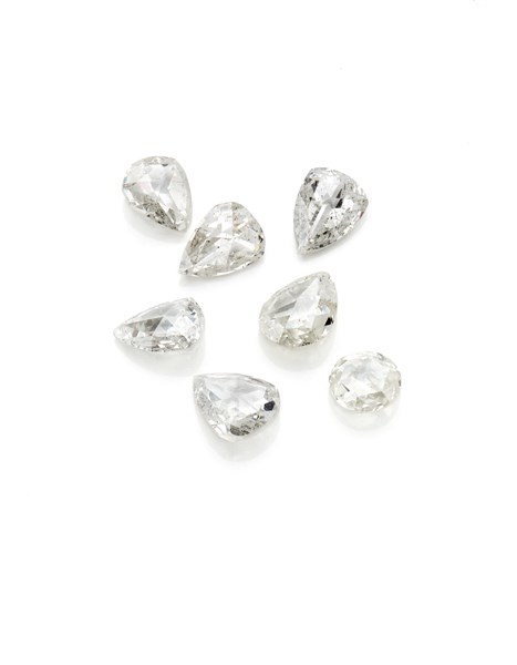 Lotto 762 | Lotto di sette diamanti taglio doppia rosa di cui sei a goccia e uno tondo per