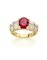 Lotto 824 | Anello in oro giallo con diamanti tapered e al centro un rubino ovale di ct. 2,