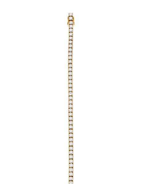 Bracciale tennis in oro giallo con diamanti rotondi per complessivi ct. 6,50 circa, g 15,88 circa, lungh. cm 17,80 circa.