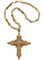 Yellow 14K gold and enamel chain holding a cm 10.7 circa ruby, emerald and diamond cross, g 69.59 circa, length cm 45 circa. Marked 1002 NA.