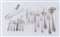FABBRICA POSATERIA ARGENTO E BANCO METALLI PREZIOSI DI MORINI MARIA, Bologna, XX secolo. Servizio di posate in argento 800, da 12 persone. Lotto composto da dodici forchettine, dodici forchette, ventiquattro forchette, ventiquattro cucchiai, ventiquattro cucchiaini, dodici coltelli, dodici coltellini e sette posate da portata. Al retro recano punzoni: losanga locativa 23BO e 800. Peso complessivo (coltelli stimati 30 gr per lama grande e 25 grammi per lama piccola): 6055 gr.