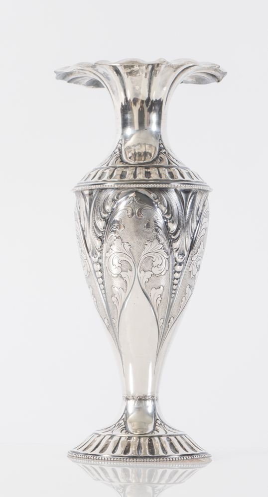 Lotto 108 | ITALIA, XX secolo. Vaso in argento 800. Sul bordo inferiore reca punzoni:...