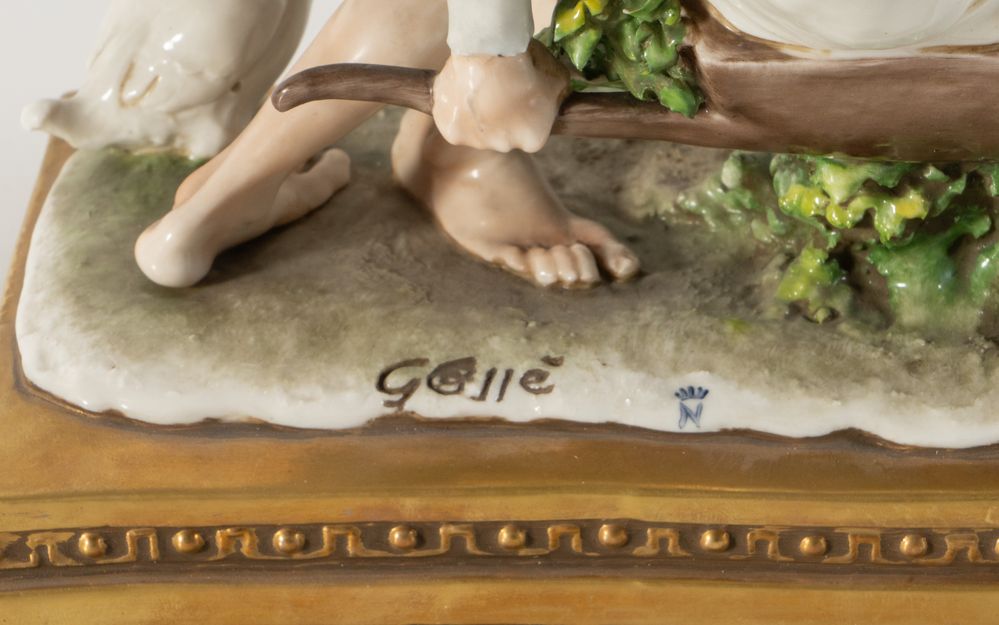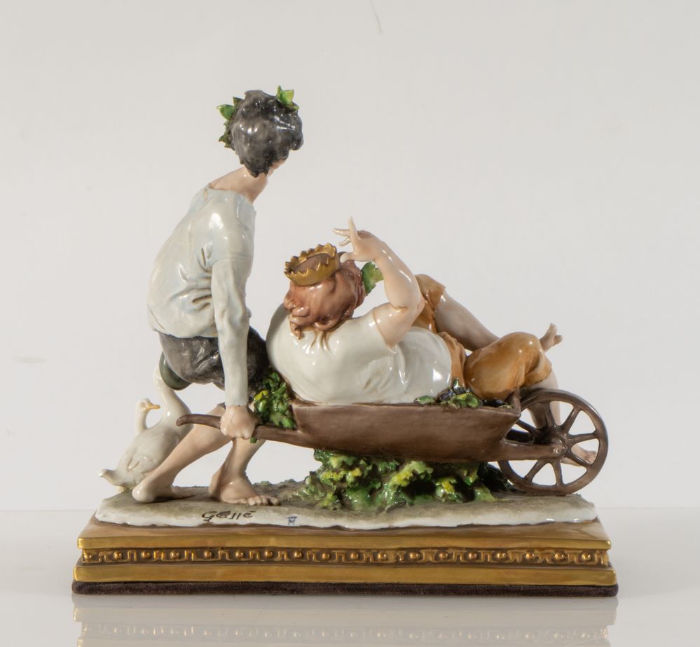 GIUSEPPE CAPPÈ (Cittiglio 1921 - Lomagna 2008) "L'ebbrezza", 1963. Scultura in porcellana smaltata. Cm 21x23x11. Sulla base reca firma G Cappè. Sulla base reca marchio Capodimonte.