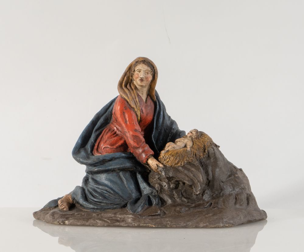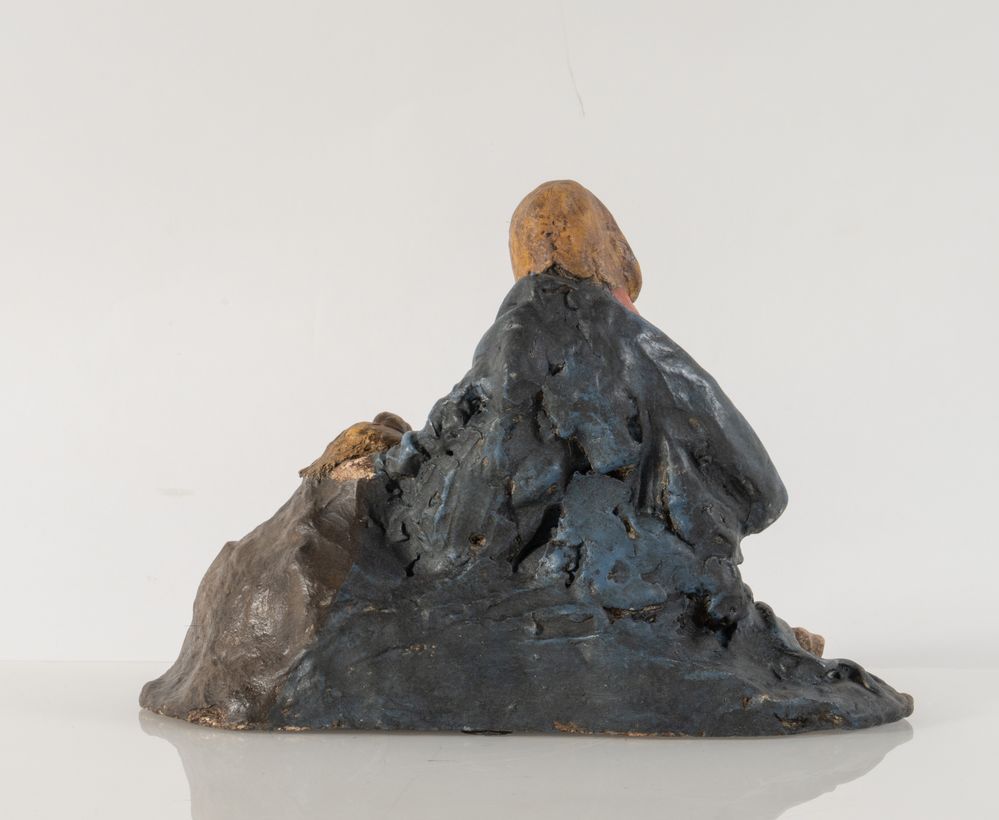 "Madonna con bambino". Scultura in terracotta policroma. Emilia, inizi XX secolo. Cm 22x29,5x15