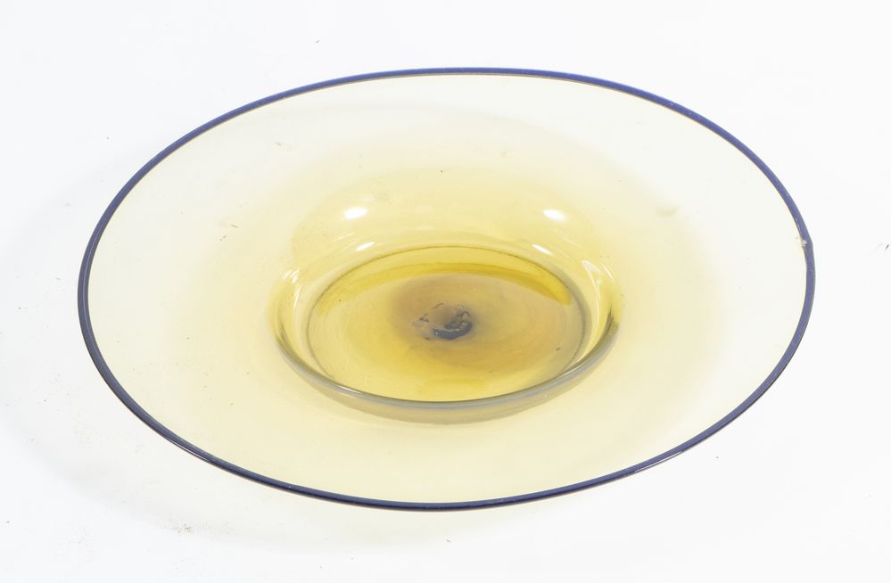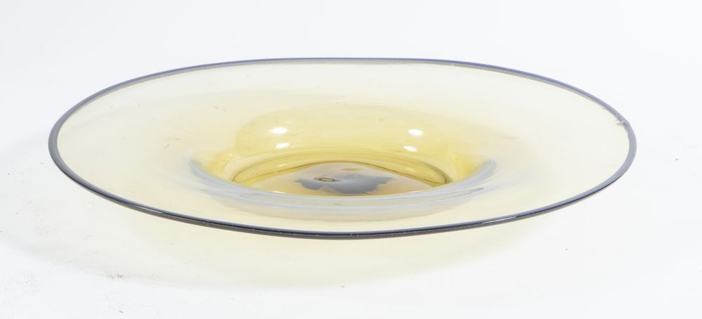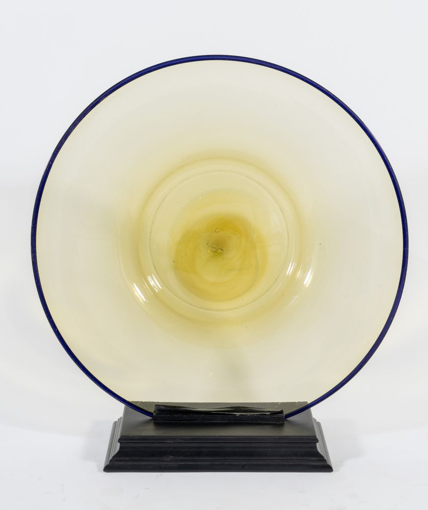 Murano, attr. Centrotavola in vetro soffiato a mano, con base in legno. Prod. Italia, 1940 circa. Cm 62x6.