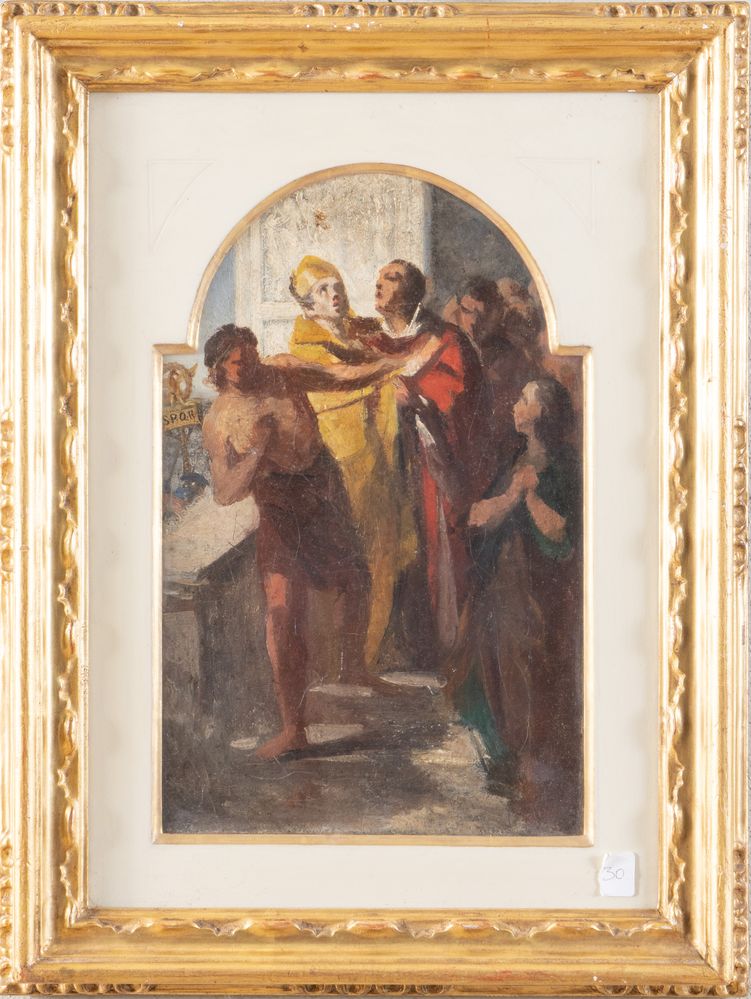 Lotto 223 | Maestro del XIX secolo. "Scena sacra". Olio su tavola. Cm 31x20. Nel telaio...