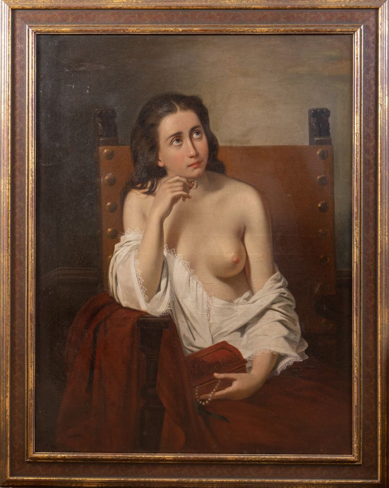 Lotto 226 | Maestro del XIX secolo. "Ritratto di donna seduta". Olio su tela. Cm 103,5x78.