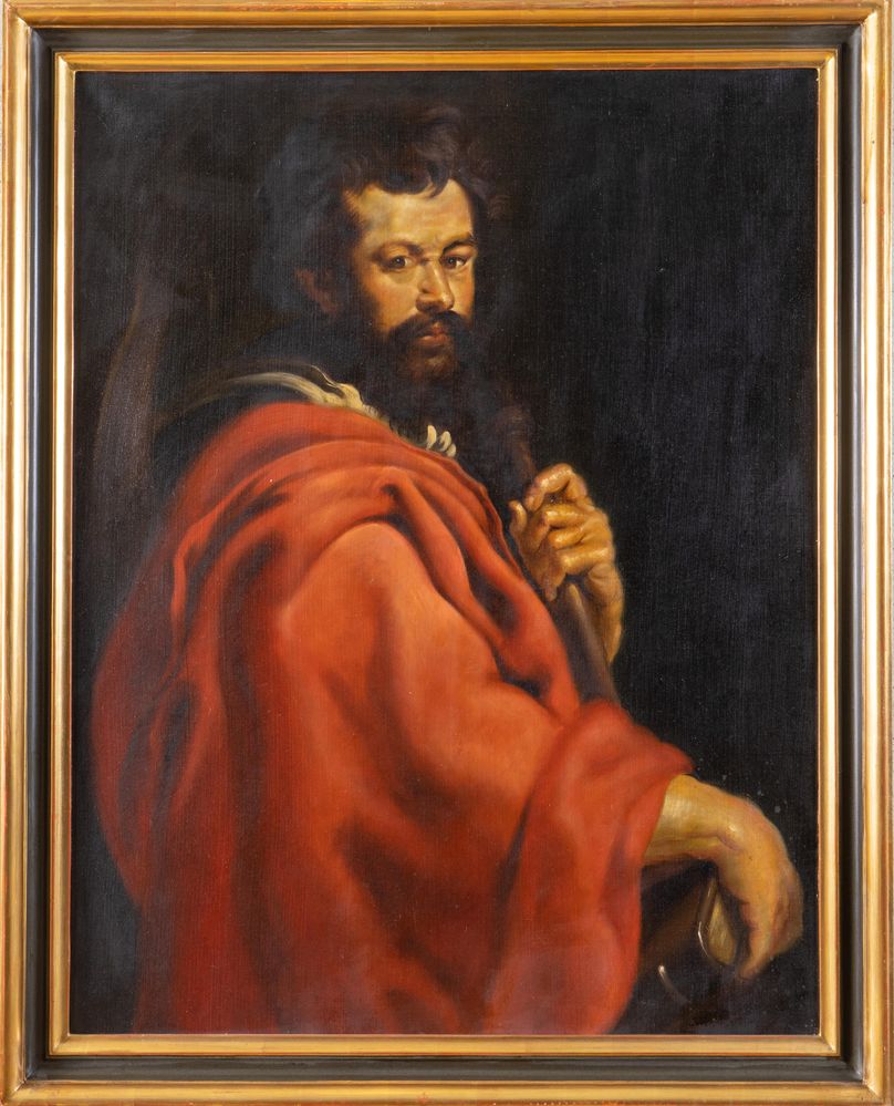 Maestro del XX secolo. "San Giacomo Apostolo". Olio su tela. Cm 90x70. Copia da Rubens.