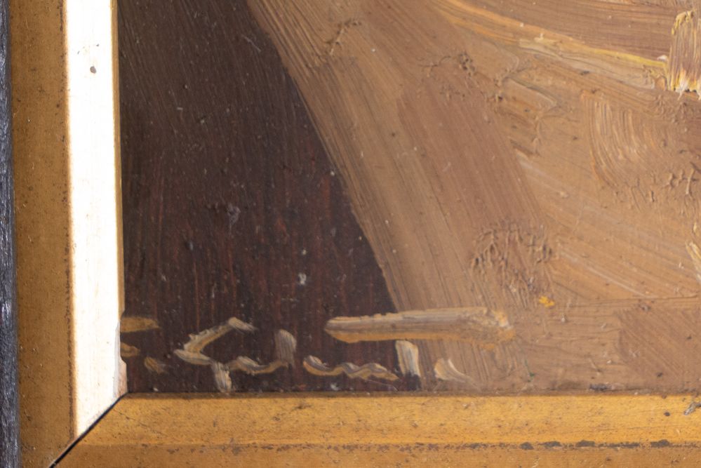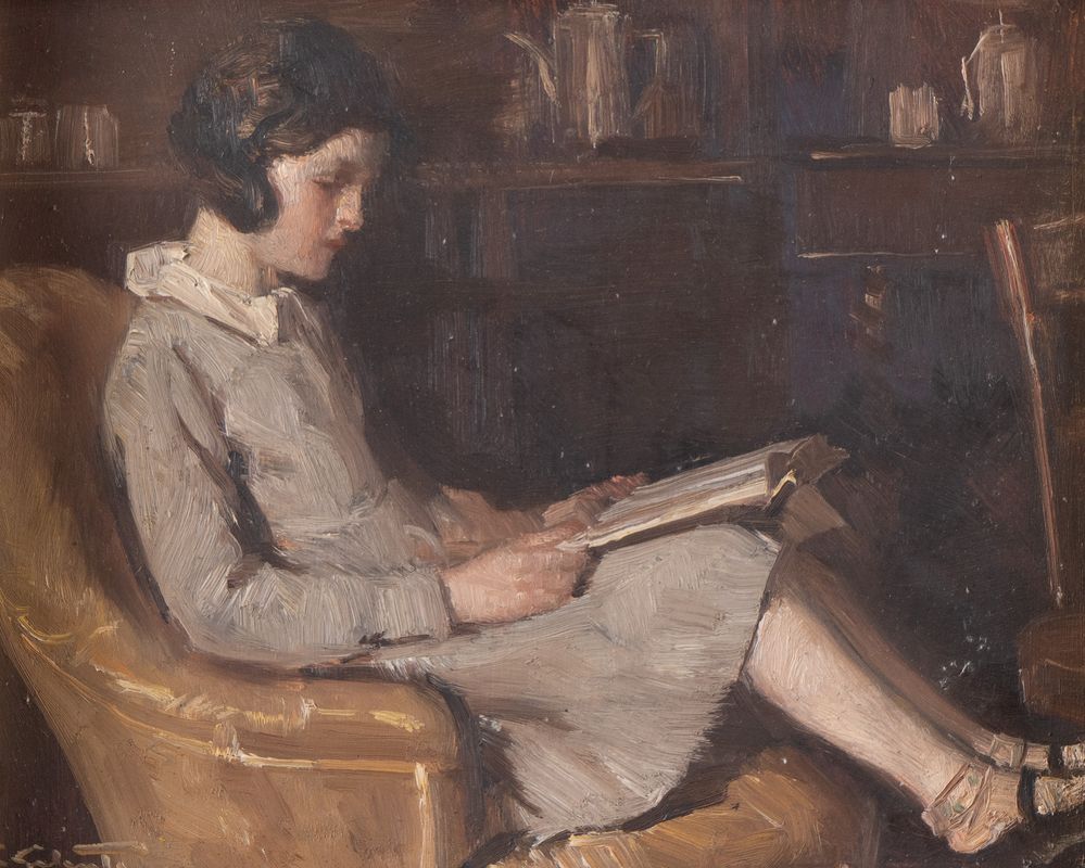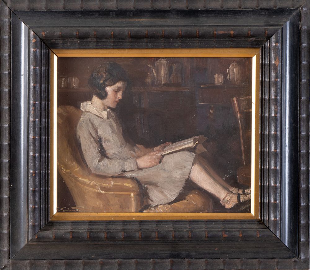 FRANCESCO GALANTE (Margherita di Savoia 1884 - Napoli 1972) "Ragazza che legge". Olio su tavola. Cm 21x26. Opera firmata in basso a sinistra F. Galante.