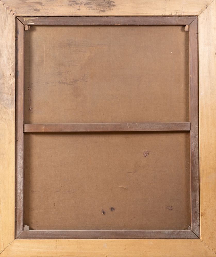 Pittore del XX secolo. "Scena d'interno". Olio su tela. Cm 130x107,3. Copia...