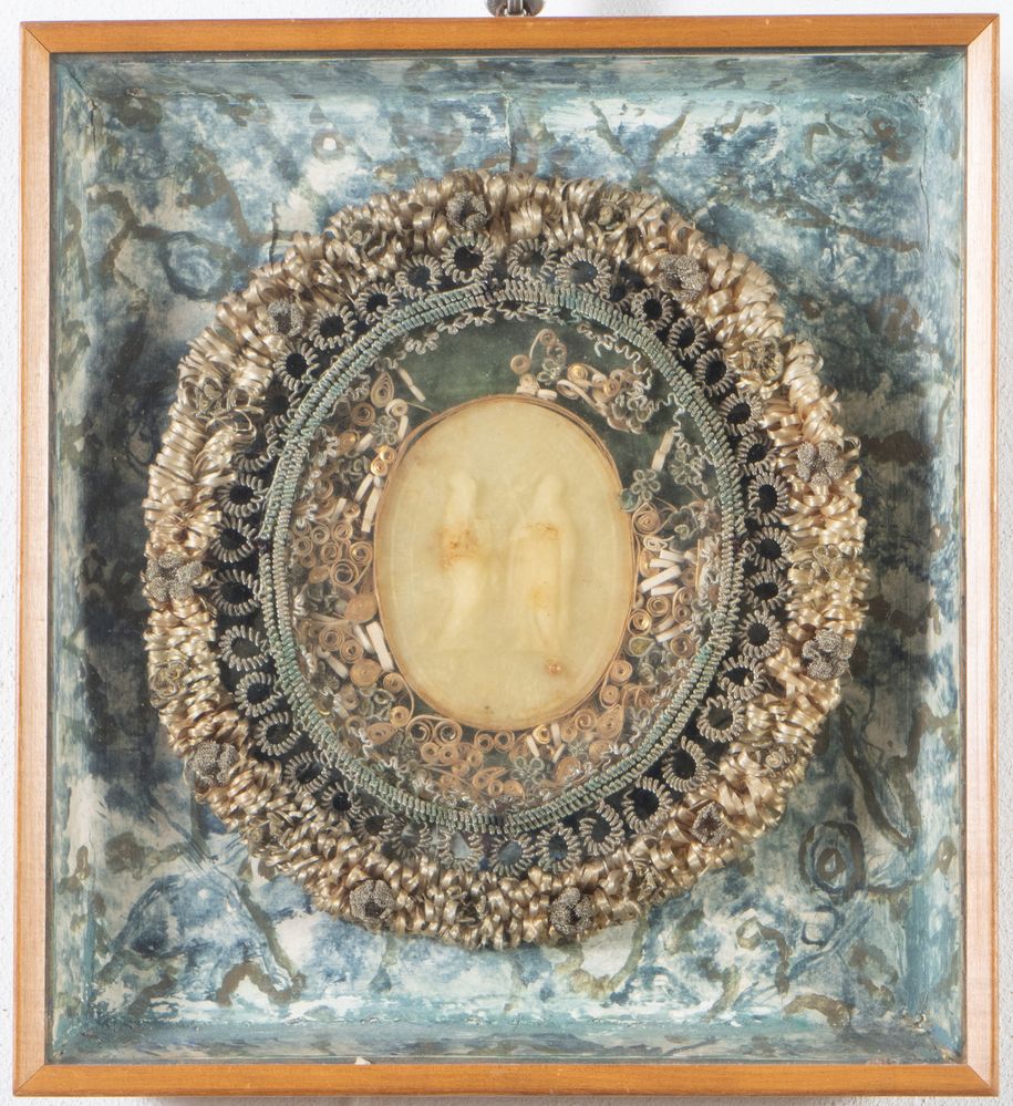 Bassorilievo in cera entro teca con cornice in filigrana. Emilia, XVIII secolo. Cm 5x33,5x30.