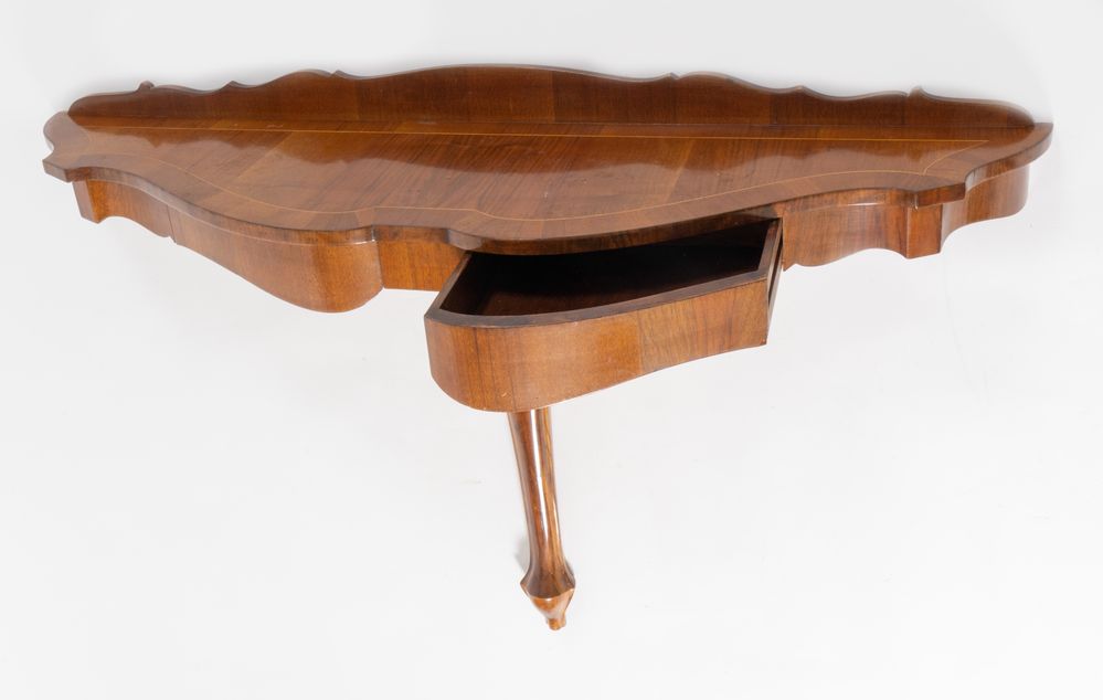 Piccola consolle impiallacciata in noce, di gusto settecentesco. Anni '50 del...