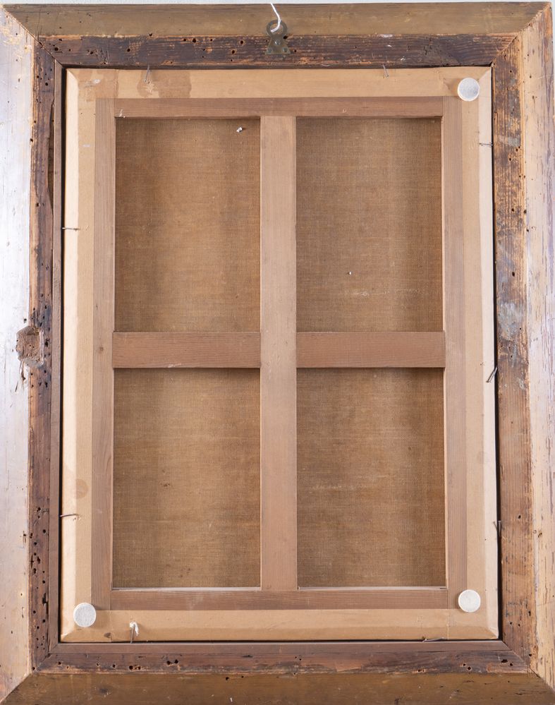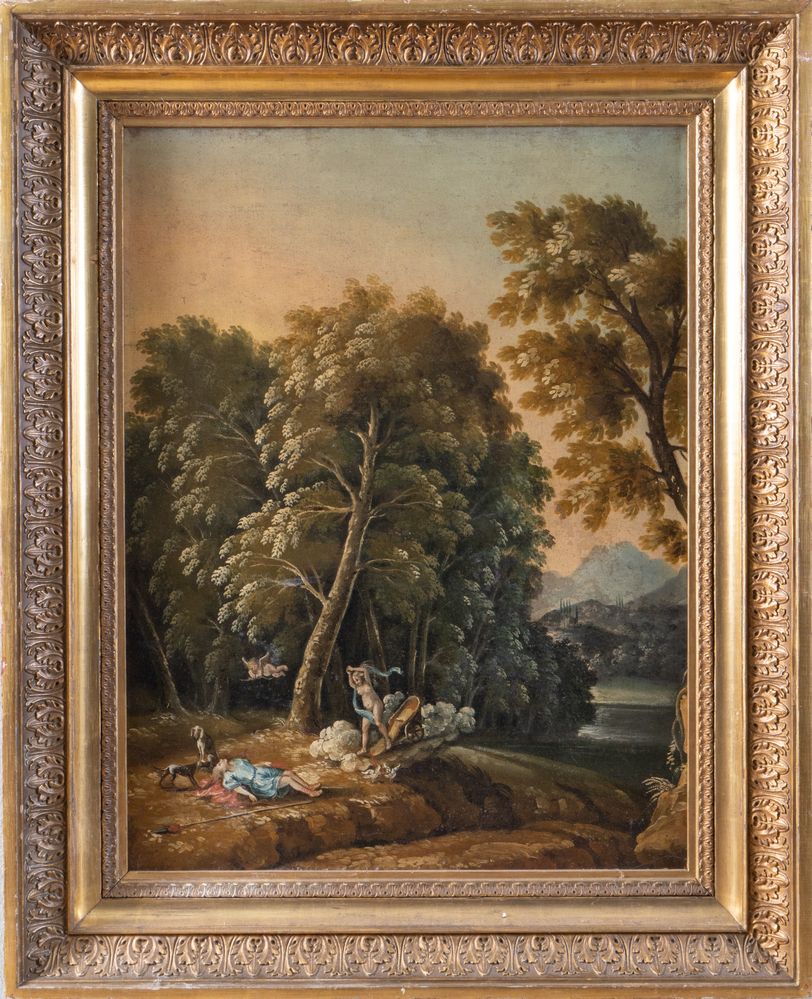 Pittore anonimo del XX secolo. "Paesaggio bucolico con figure". Olio su tela. Cm 80,5x61.