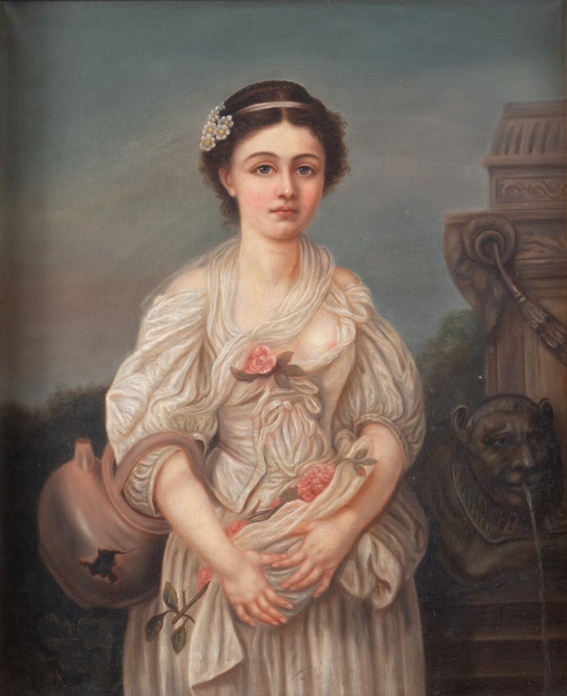 Maestro del XIX secolo. "Fanciulla". Olio su tela. Cm 64,5x53,5.