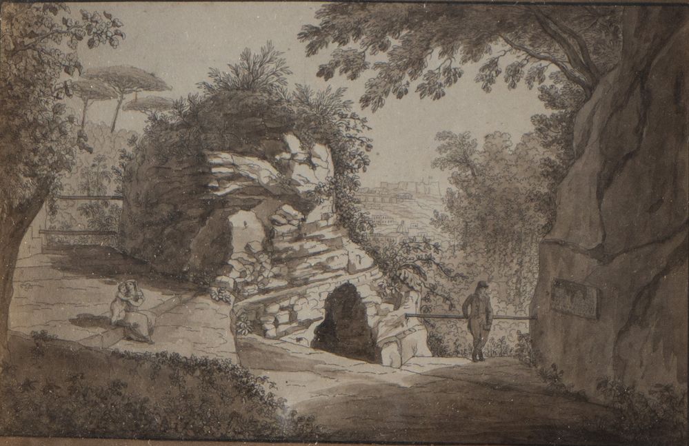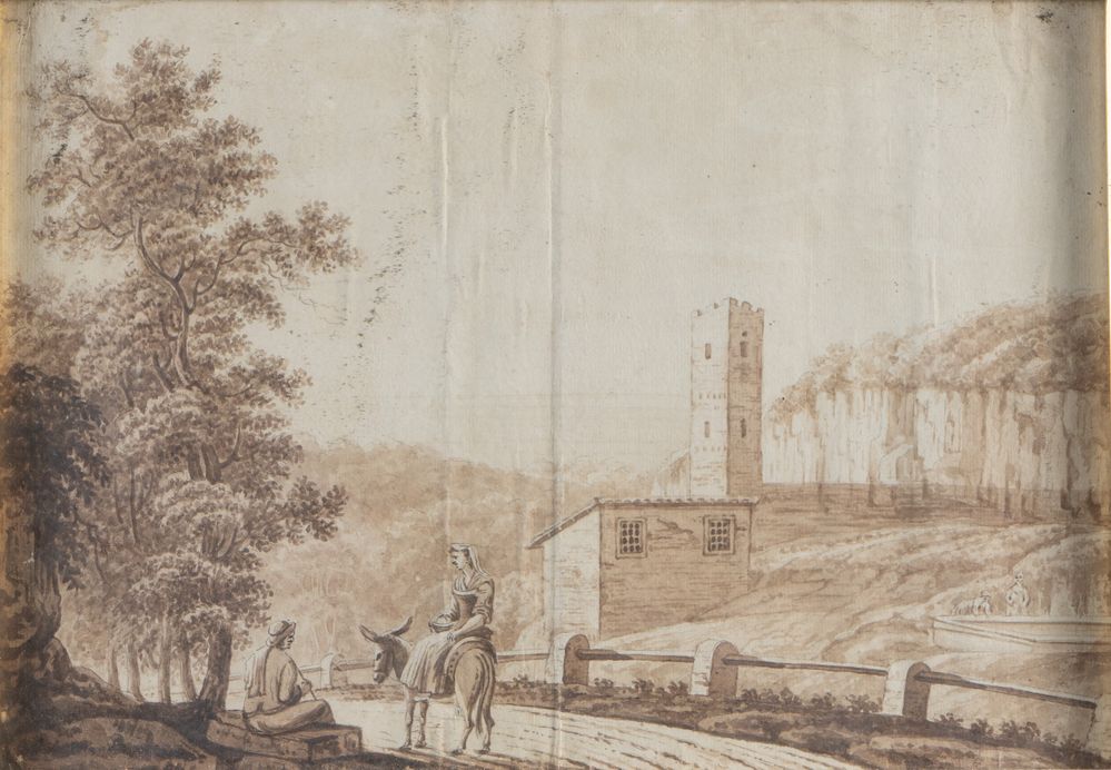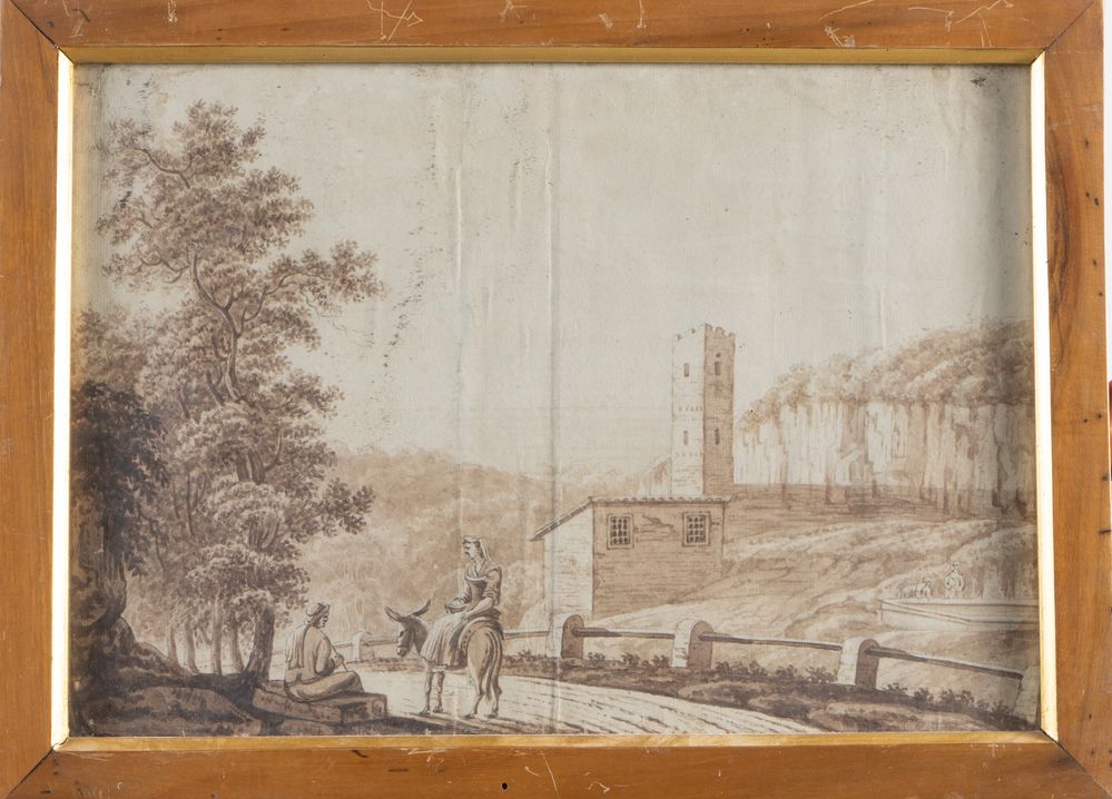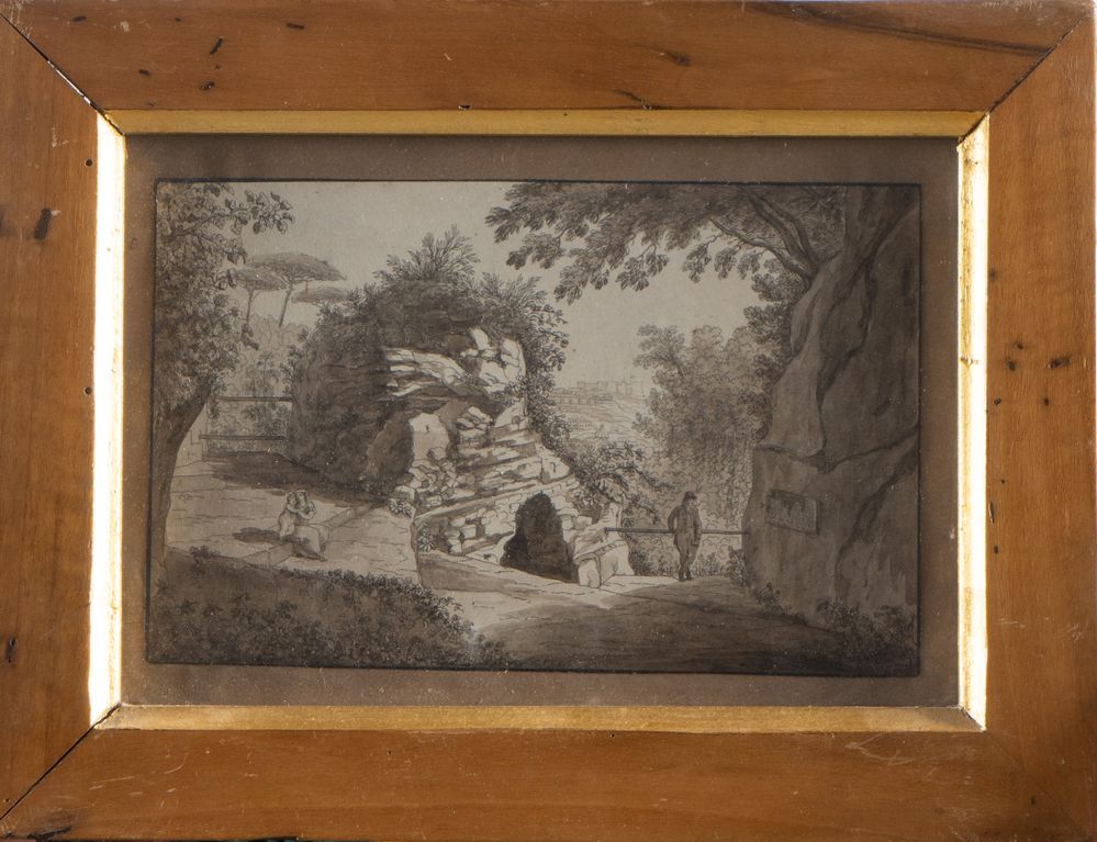 Maestro del XIX secolo. Lotto composto da una coppia di disegni. "Parco Virgiliano a Piedigrotta" e "Paesaggio con figure". Rispettivamente di cm 11,5x17,7; cm 31x43,5.