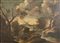 Ambito di Salvator Rosa, XVII secolo. "Paesaggio fluviale con figure". Olio...