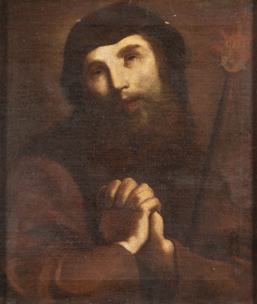 Ambito di Giuseppe Maria Crespi, detto lo Spagnolo, XVIII secolo. "San Francesco di Paola". Olio su tela. Cm 59x50.