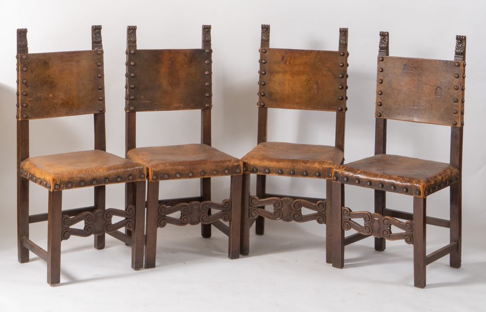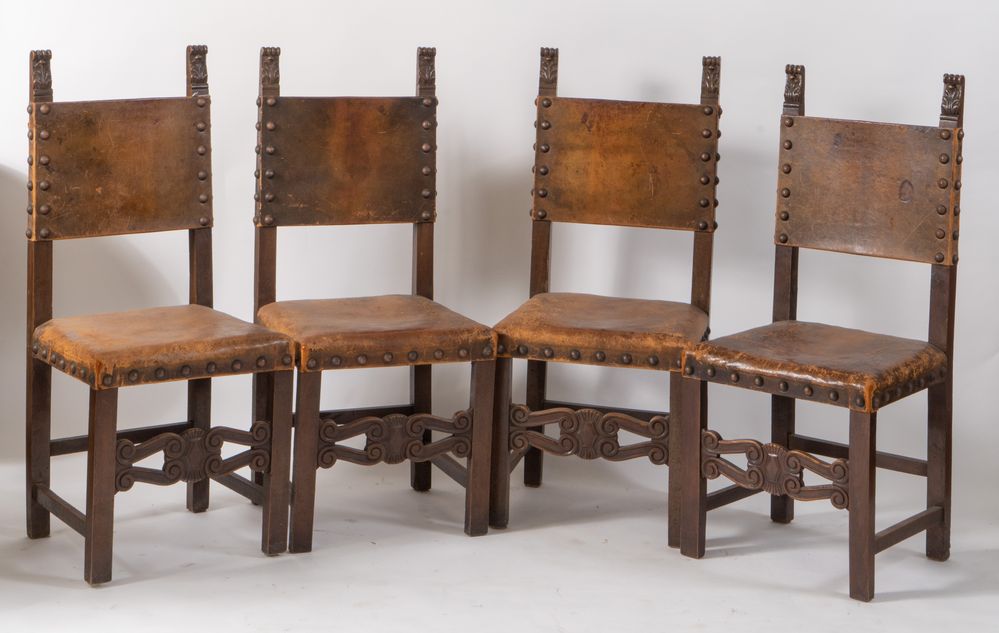 Lotto 308 | Lotto composto da quattro sedie in stile rinascimentale ma realizzate nei...