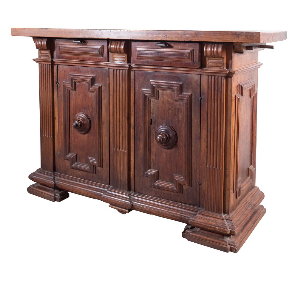 Credenza in massello di noce rimaneggiata. Emilia, primo quarto del XVIII secolo. Cm 113x169x57.