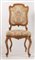 Lotto composto da sei sedie in massello di noce intagliate. Austria, di gusto Luigi XV, ma realizzate verso la fine del XIX secolo. Recano sostegni sagomati terminanti in piedi a ricciolo. Cadauna di cm 106x51x52. (rottura di un piede)