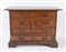Piccolo canterano in massello di noce. Bologna-Modena, seconda metà del XVII secolo. Reca fronte dei cassetti lastronato, maniglie e bocchette in bronzo, piano fortementemente aggettante, formelle sagomate ai lati cornicione alla base, sorretto da piedi a mensola. Cm 97,5x135,5x60.