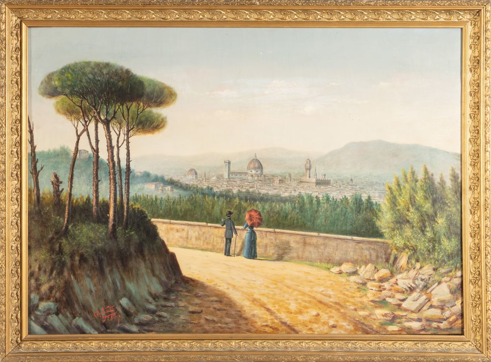 GIUSTINA TOSI (XIX secolo) "Belvedere fiorentino", 1890. Olio su tela. Cm 70x100. Opera firmata e datata in basso a sinistra Giustina Tosi 1890 Firenze.