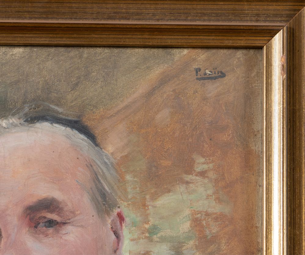 PAUL SAIN (Avignone 1853 - 1908) "Ritratto di prelato". Olio su tela. Cm 35x27,5. Opera firmata in alto a destra P. Sain. Al retro reca timbro Chabod, Md de Couleurs, Toiles à tableaux, Rue Jacob 20.