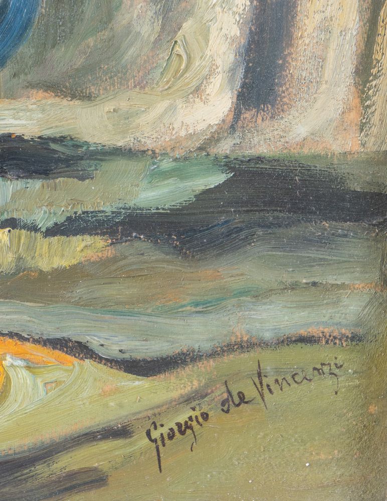GIORGIO DE VINCENZI (Ferrara 1884 - Bologna 1965) "Vaso di fiori". Olio su tavola. Cm 69,5x50,5. Opera firmata in basso a destra Giorgio de Vincenzi.