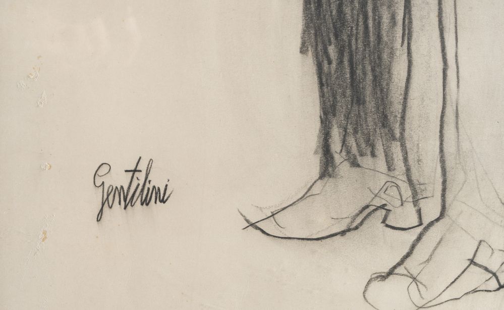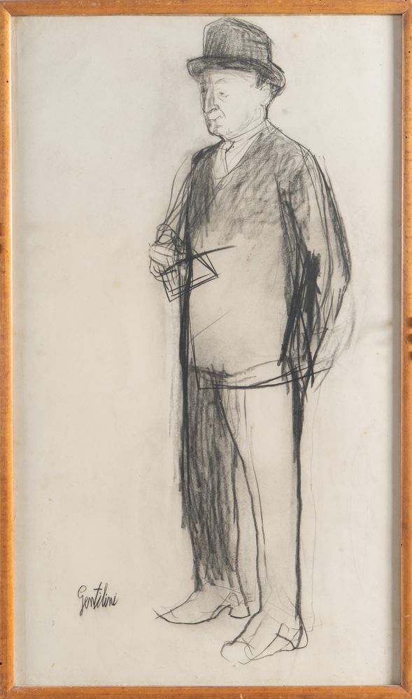 Lotto 418 | FRANCO GENTILINI (Faenza 1909 - Roma 1981) "Uomo con cappello". Carboncino su...