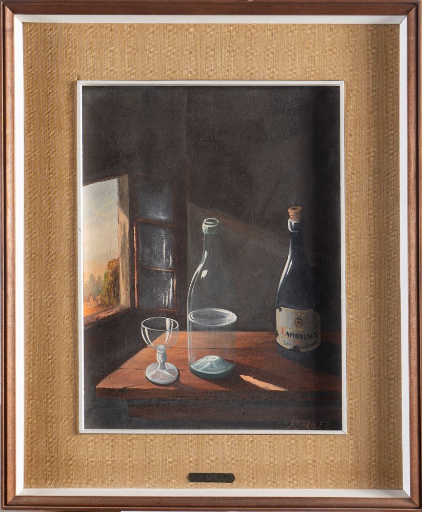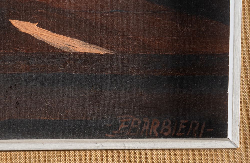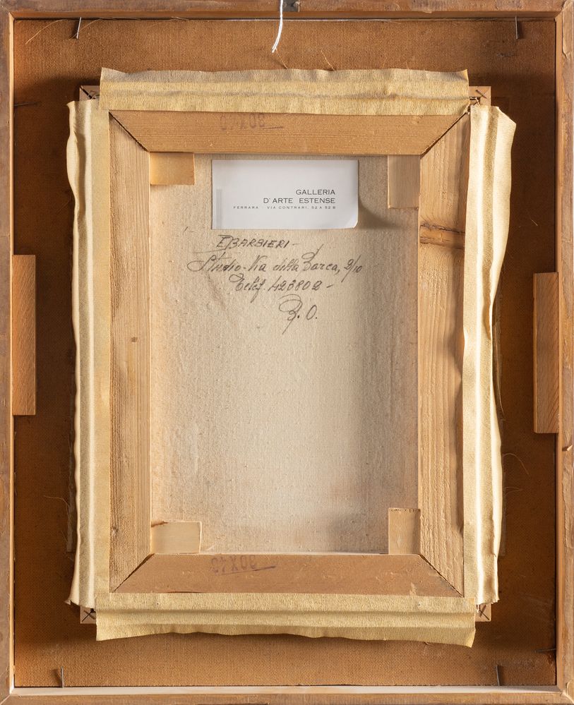 ENZO BARBIERI (XX - XXI) "Senza titolo". Olio su tela. Cm 40x30. Opera firmata in basso a destra E. Barbieri. Al retro reca etichetta della Galleria d'Arte Estense, Ferrara. Al retro reca scritta.