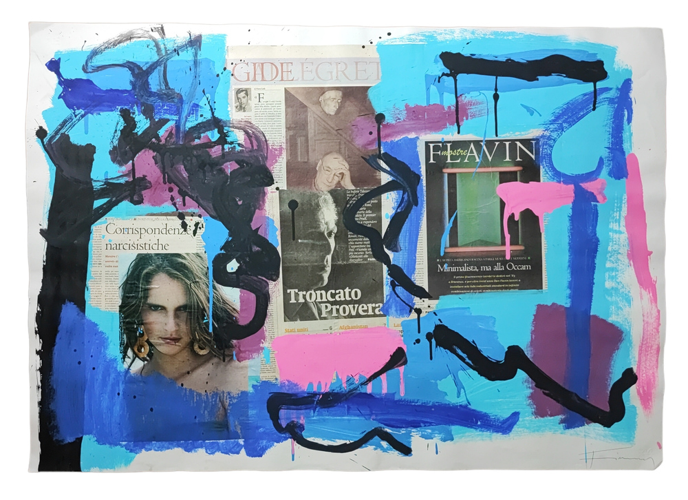 Fieramosca James ( Reggio Emilia 1949 ) SENZA TITOLO Acrilico e collage su carta 70x100 cm; firma in basso a destra.