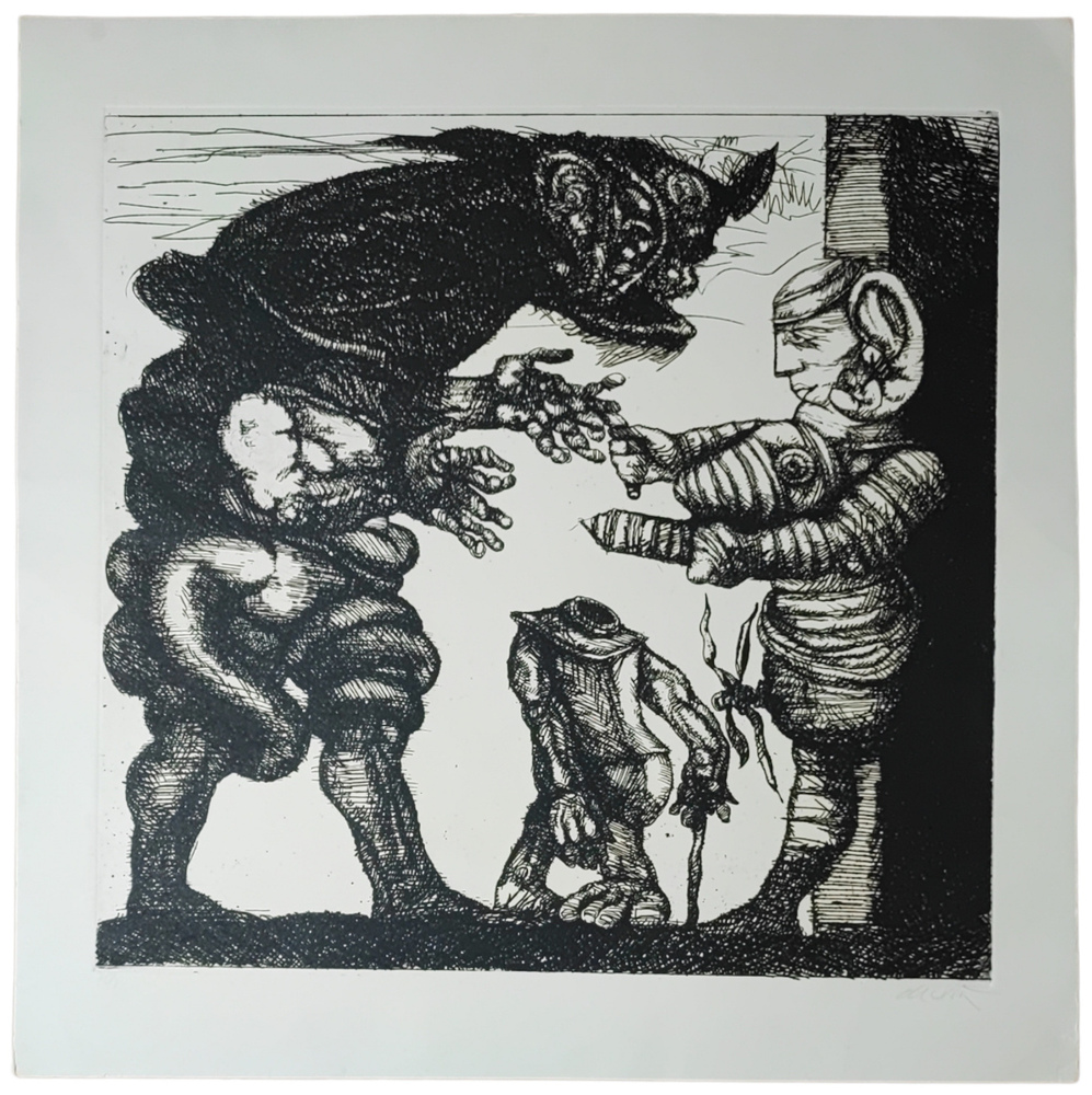 Acquaforte 60x60 cm; firma in basso a destra, tiratura 70/90 in basso a sinistra.