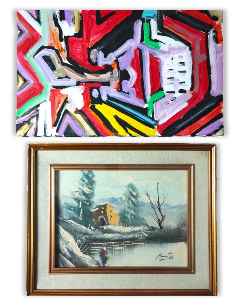 Firmato Roselli COMPOSIZIONE Acrilico su tela 38x60 cm, firma al bordo.