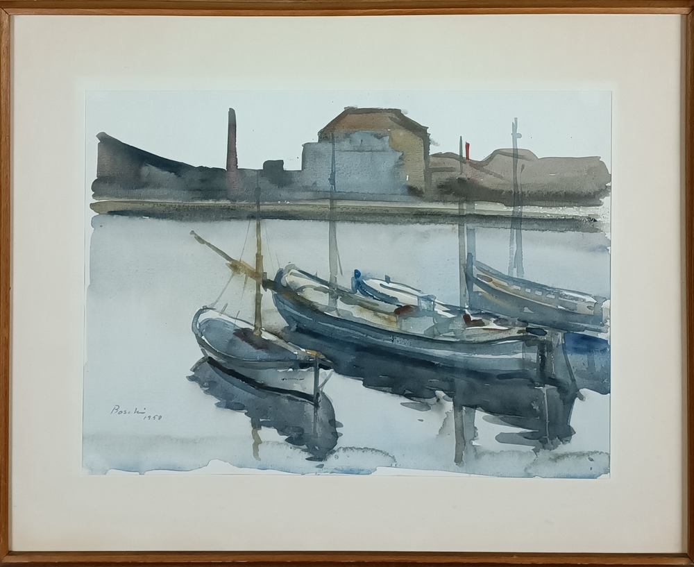 Lotto 100 | Dino Boschi - Canale con barca, 1958.