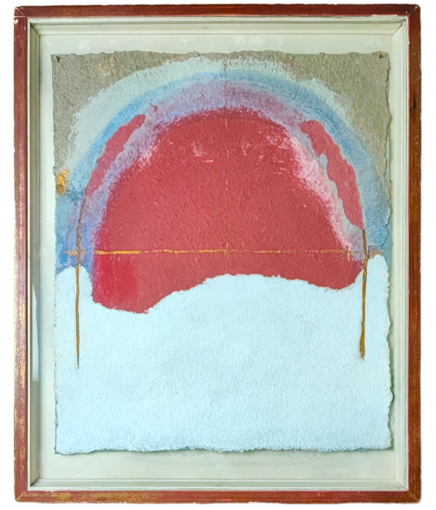 Tecnica mista su cartone e tessuto 37x43 cm; firma, titolo e anno al retro.