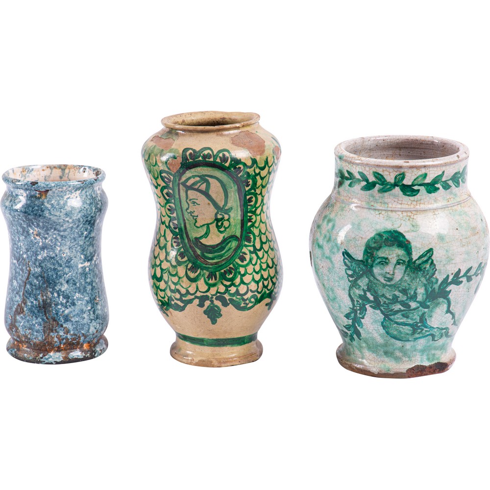 DUE PICCOLI ALBARELLI e BOCCIA in maiolica