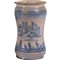CILINDRO in maiolica smaltata e dipinta, con decori raffigurante "Paesaggio con castello" (usure).