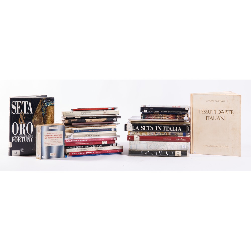 RACCOLTA di 41 volumi, pubblicazioni, libri e cataloghi riguardanti la storia della seta, dei tessuti, dei merletti e dei paramenti.
