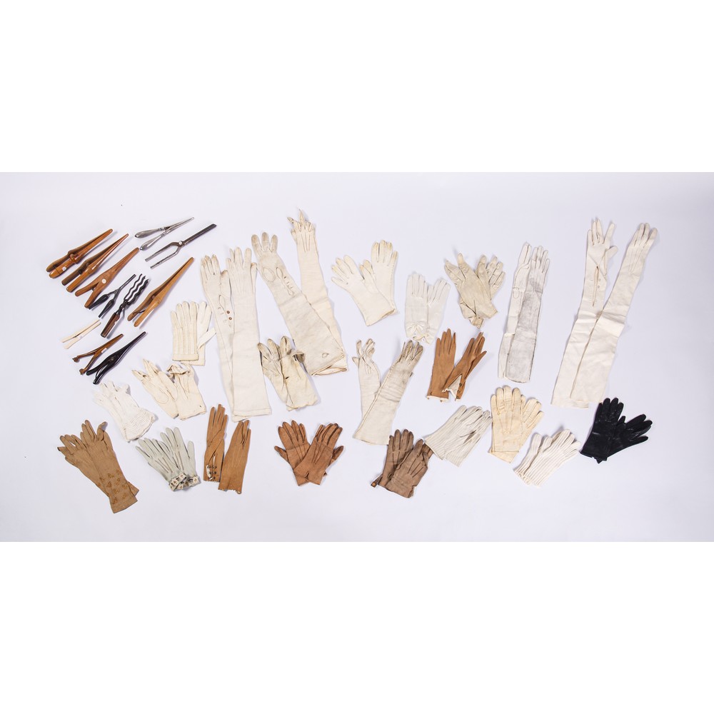 22 PAIA DI GUANTI E 11 PINZE ALLARGA GUANTI DEL XIX E XX SEC.