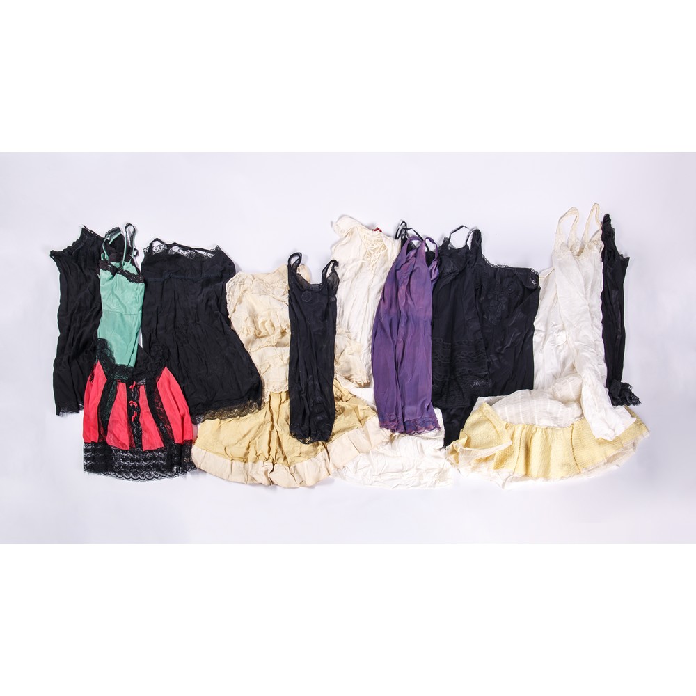 Una raccolta di quindici tra sottogonne e sottane di vario tessuto e colore, alcune con ricami.