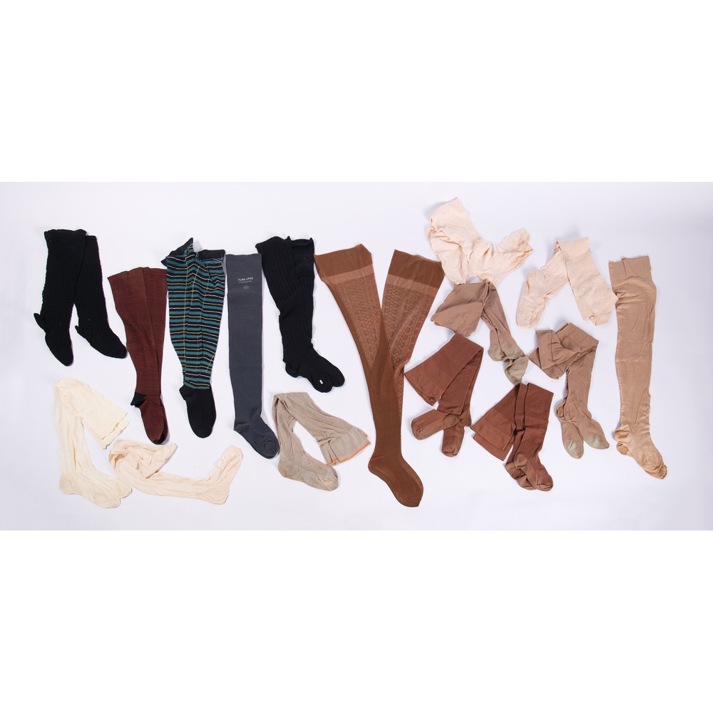 Quindici paia di calze in cotone e seta, cotone, seta, nylon, di colore, forma e misura differenti. Epoca XIX e XX secolo.