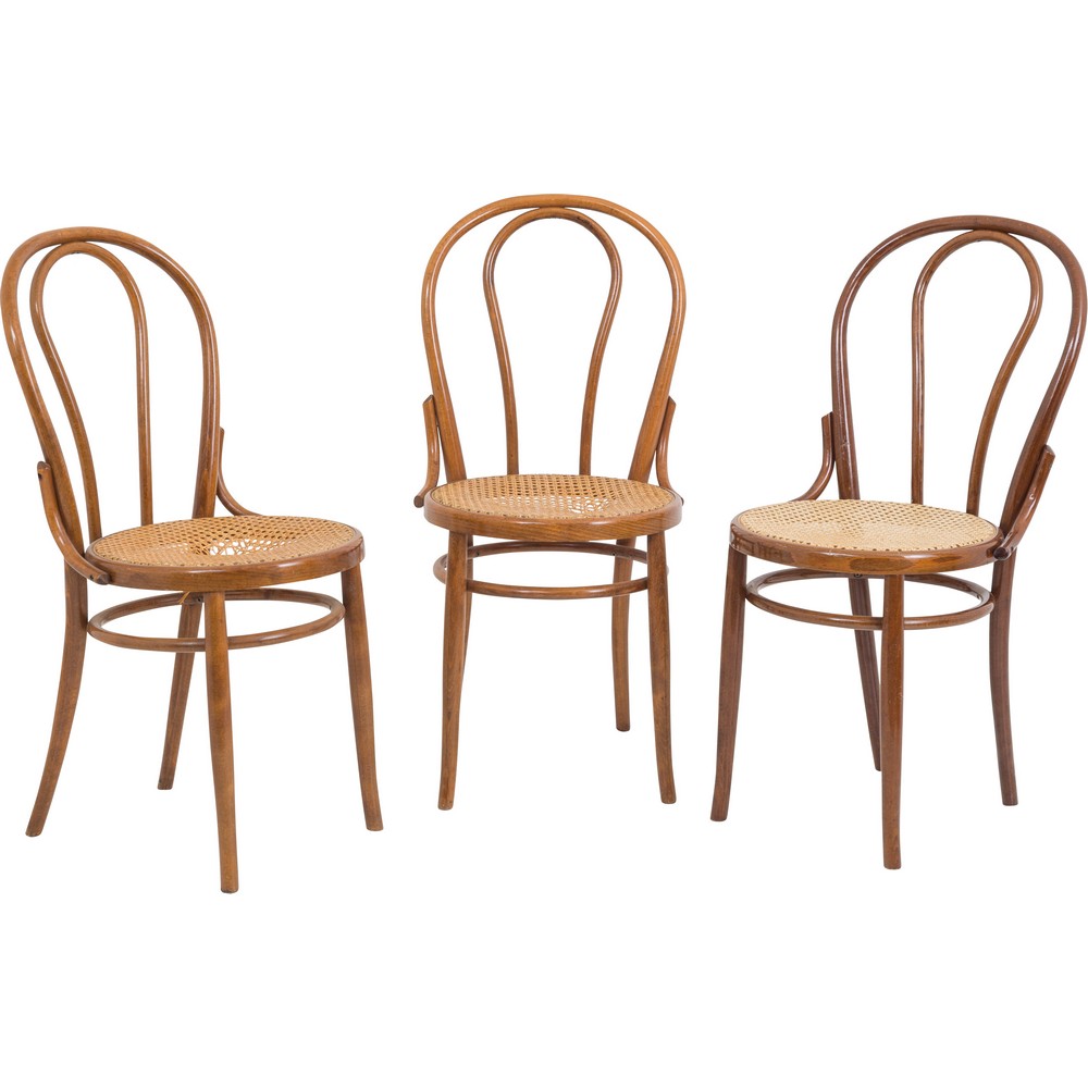 SETTE SEDIE tipo thonet (diversa tipologia) in legno di faggio curvato a fuoco.