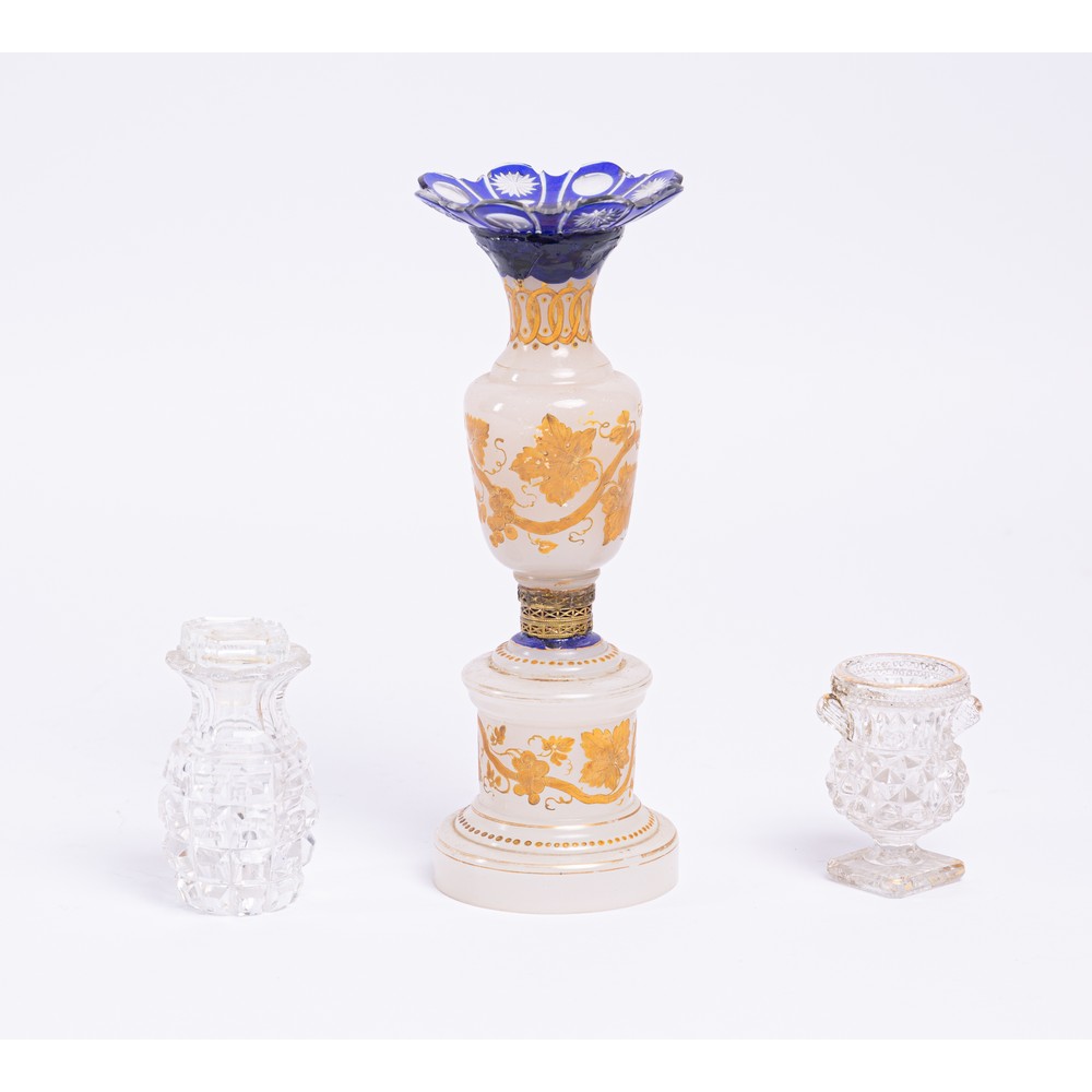 Vasetto in opaline, Vasetto e bottiglietta in vetro.