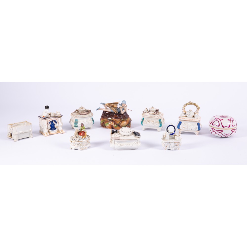 DIECI PORTAGIOIE in porcellana decorata e dipinta (difetti).