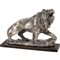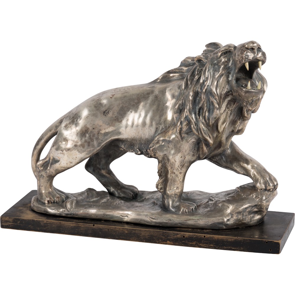 SCULTURA in terracotta e lamina argentata con base in legno raffigurante "Leone"