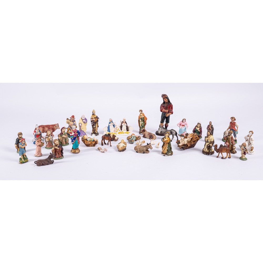 QUARANTA SCULTURINE da presepe in terracotta, schiuma di gesso e porcellana.