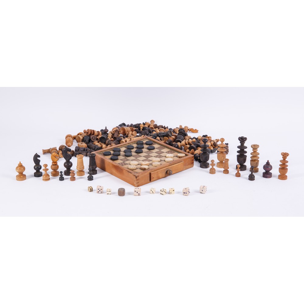 Precedente Lotto 823 Successivo Trionfante Benedetto Casa d'Aste - Viale Regione Siciliana 4975, 90146 Palermo COLLEZIONE GABRIELE AREZZO DI TRIFILETTI MOBILI ED OGGETTI sabato 26 novembre 2022 ore 10:30 (UTC +01:00) SCACCHIERA e DAMA in legno SCACCHIERA e DAMA in legno, con diverse pedine e dadi.