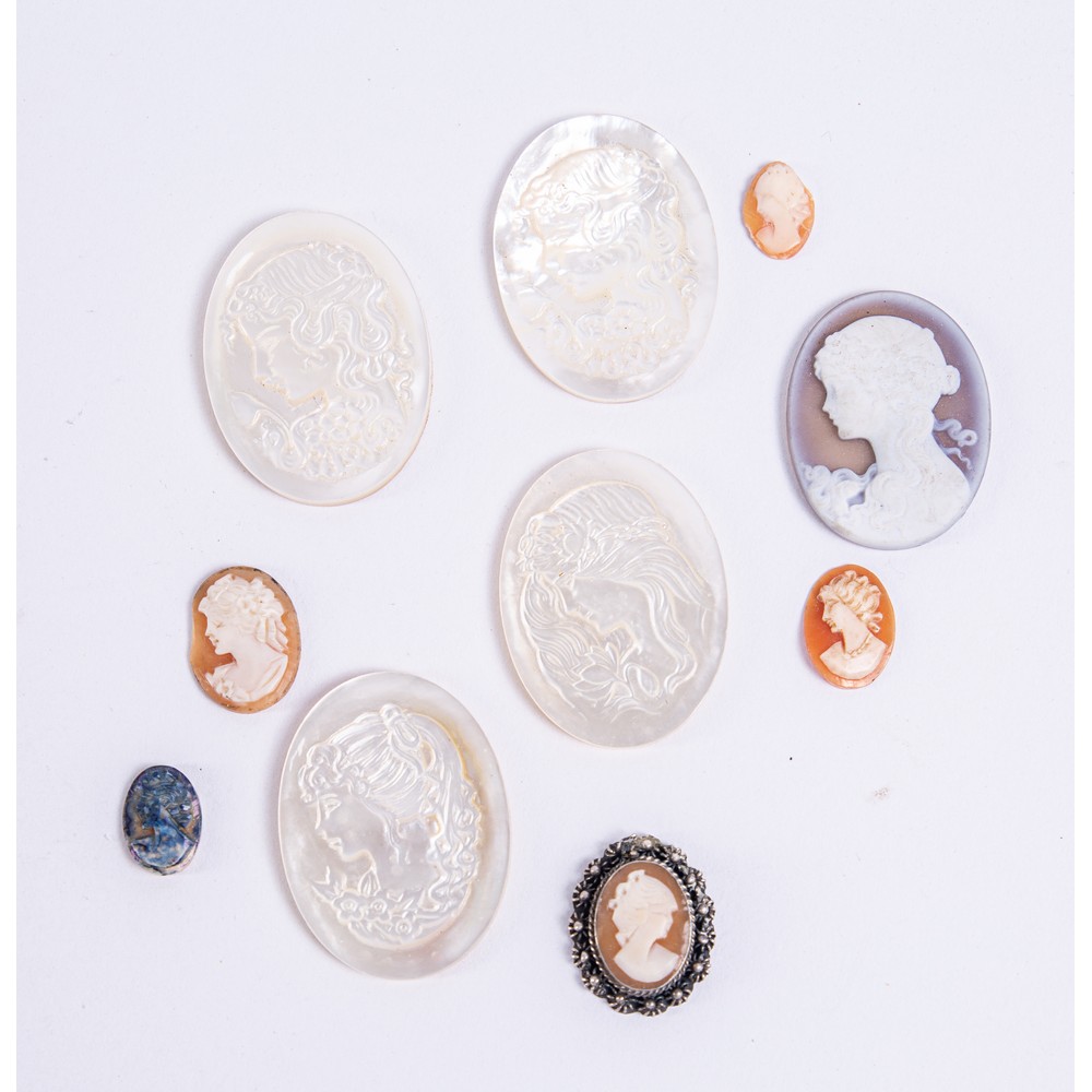 SEI CAMMEI e QUATTRO PLACCHETTE in madreperla