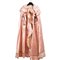 Mantella femminile in raso di seta color rosa cipria, ornata sulle spalle da due balze plissettate e da due smerlature che scendono dalle mostre e la contornano tutta. Applicato a rifinitura un nastrino di seta color verde marcio. Ai lati un inusuale apertura per le braccia rifinita da arricciature e analoghe plissettature.