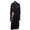 Veste a Kimono in rigatino di seta color nero, dalle grandi maniche a pagoda, interamente ricamato con motivi faunistici giapponesi policromi in filo di seta.